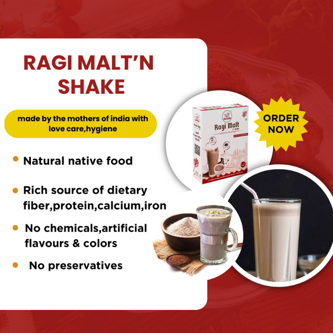 Packed with essential nutrients like dietary fiber, protein, calcium, and iron, it's the perfect choice for those looking to elevate their daily nutrition. Dietary fiber supports digestive health and helps maintain a feeling of fullness, making it an excellent addition to any balanced diet.Our commitment to quality means that you can enjoy the authentic flavors of Ragi without any artificial additives. Embrace the richness of native food and nourish your body with Ragi Malt Drink.